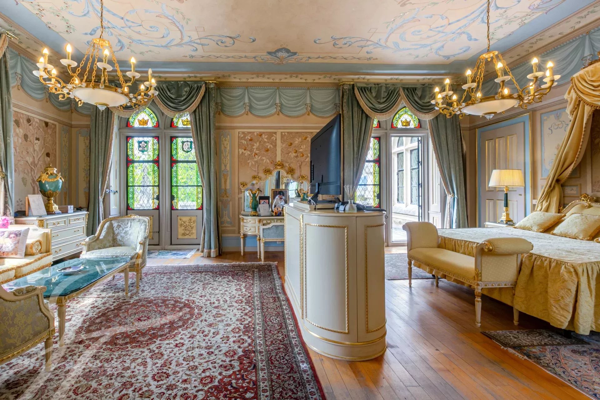 Couvrant plus de 1 000 m², les espaces de vie de la propriété s'étendent sur trois étages avec huit chambres et sept salles de bains.