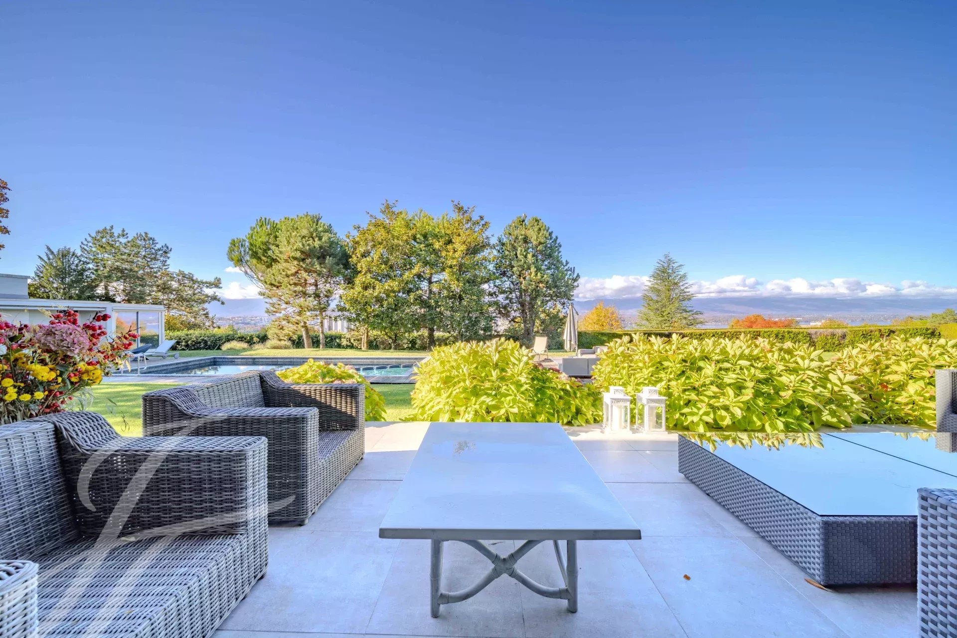 Située dans une impasse confidentielle de la prestigieuse commune de Cologny, cette propriété d'inspiration contemporaine est parfaitement implantée sur une parcelle plane d'environ 3'320 m2.
