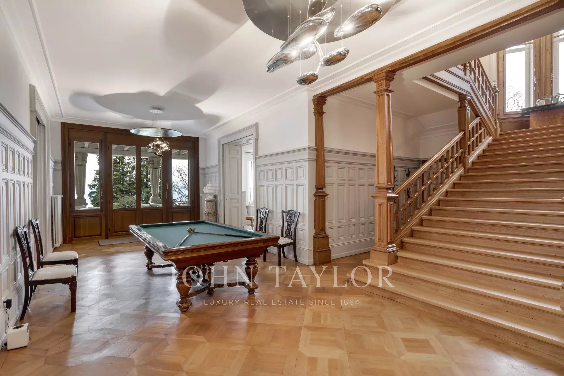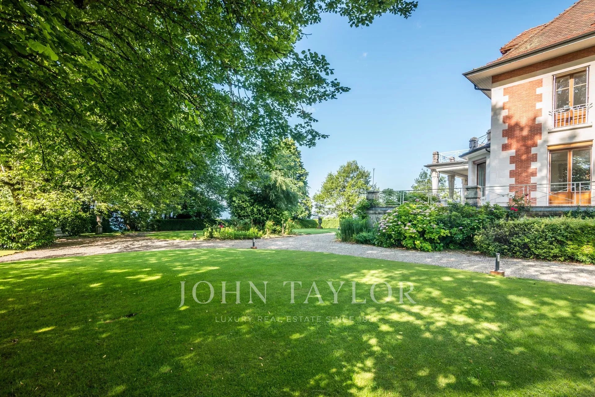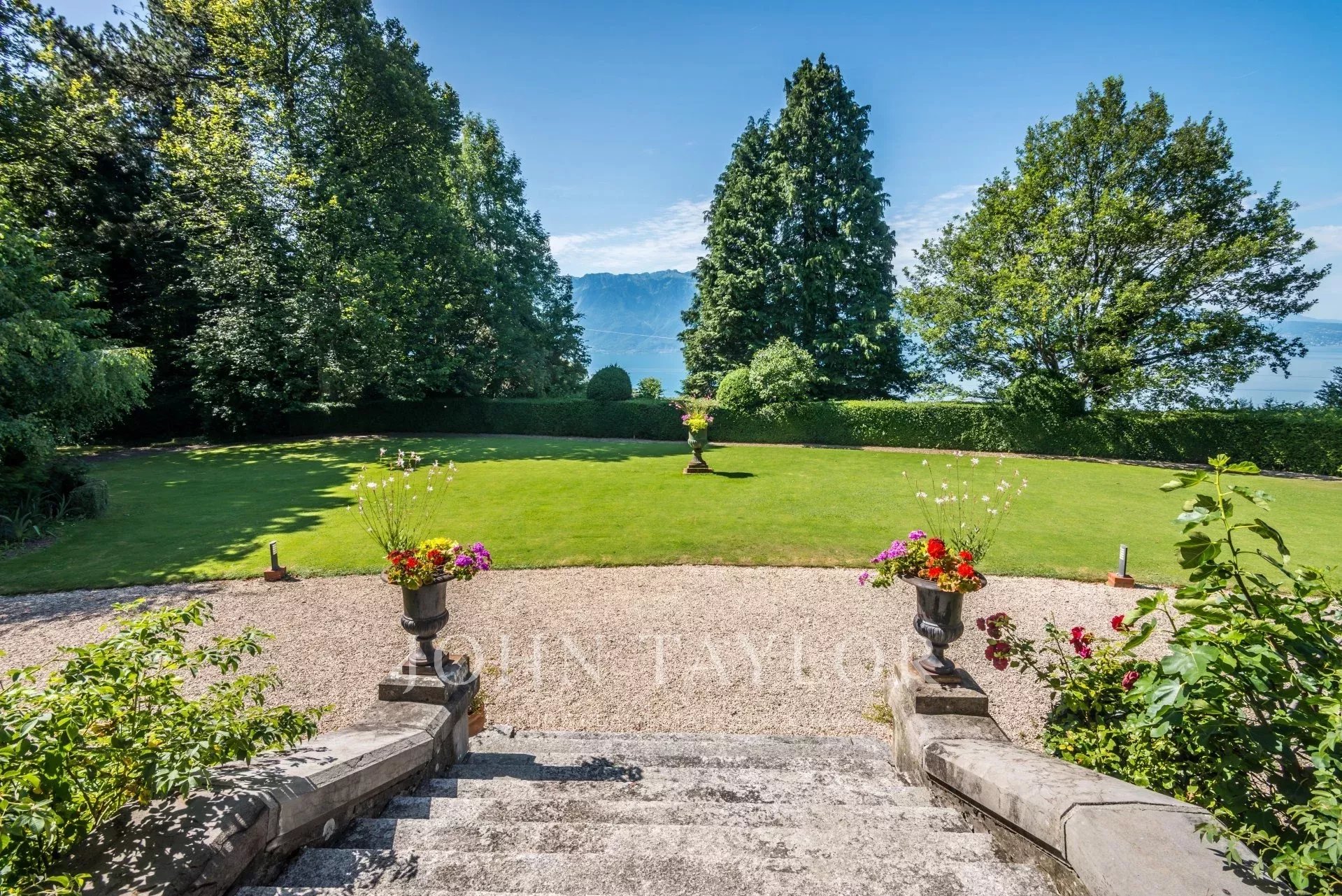 Au bout d'une grande allée privative bordée d'arbres centenaires, derrière son beau portail d'époque, cette superbe demeure historique, offre à ses résidents une magnifique vue sur le lac, les Alpes et les vignes du Lavaux.