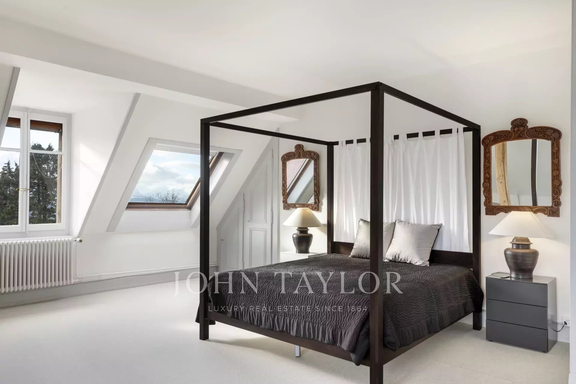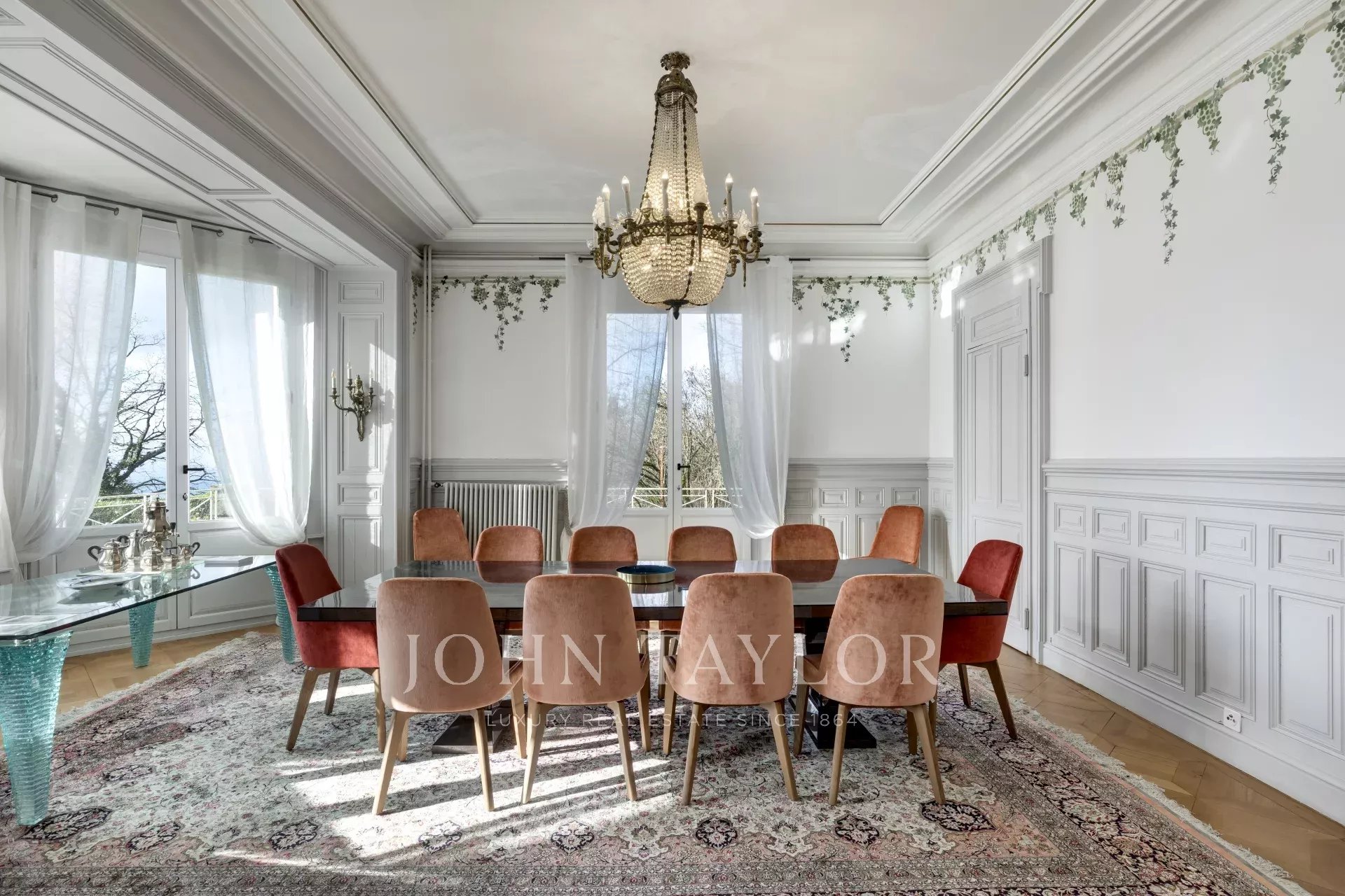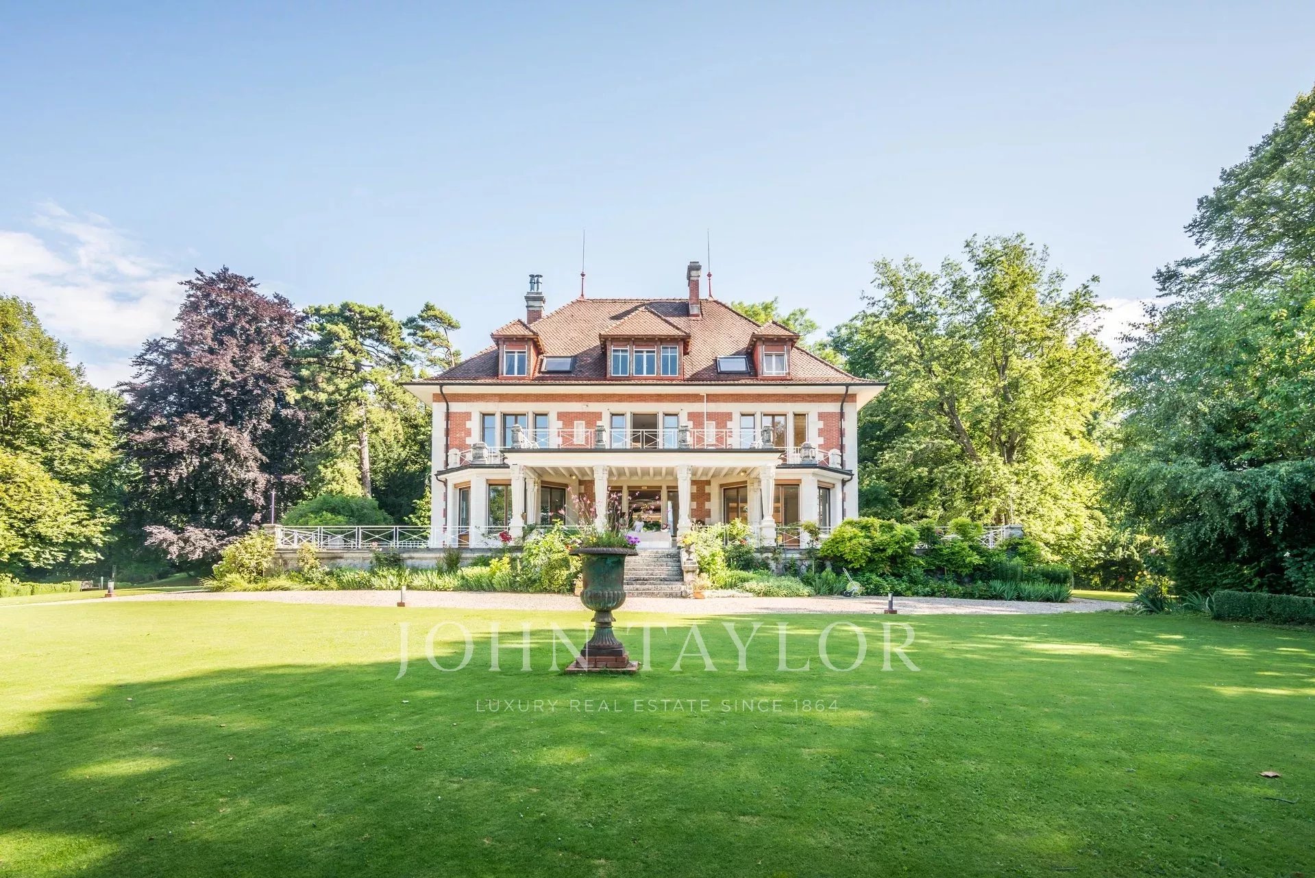 Au bout d'une grande allée privative bordée d'arbres centenaires, derrière son beau portail d'époque, cette superbe demeure historique, offre à ses résidents une magnifique vue sur le lac, les Alpes et les vignes du Lavaux.