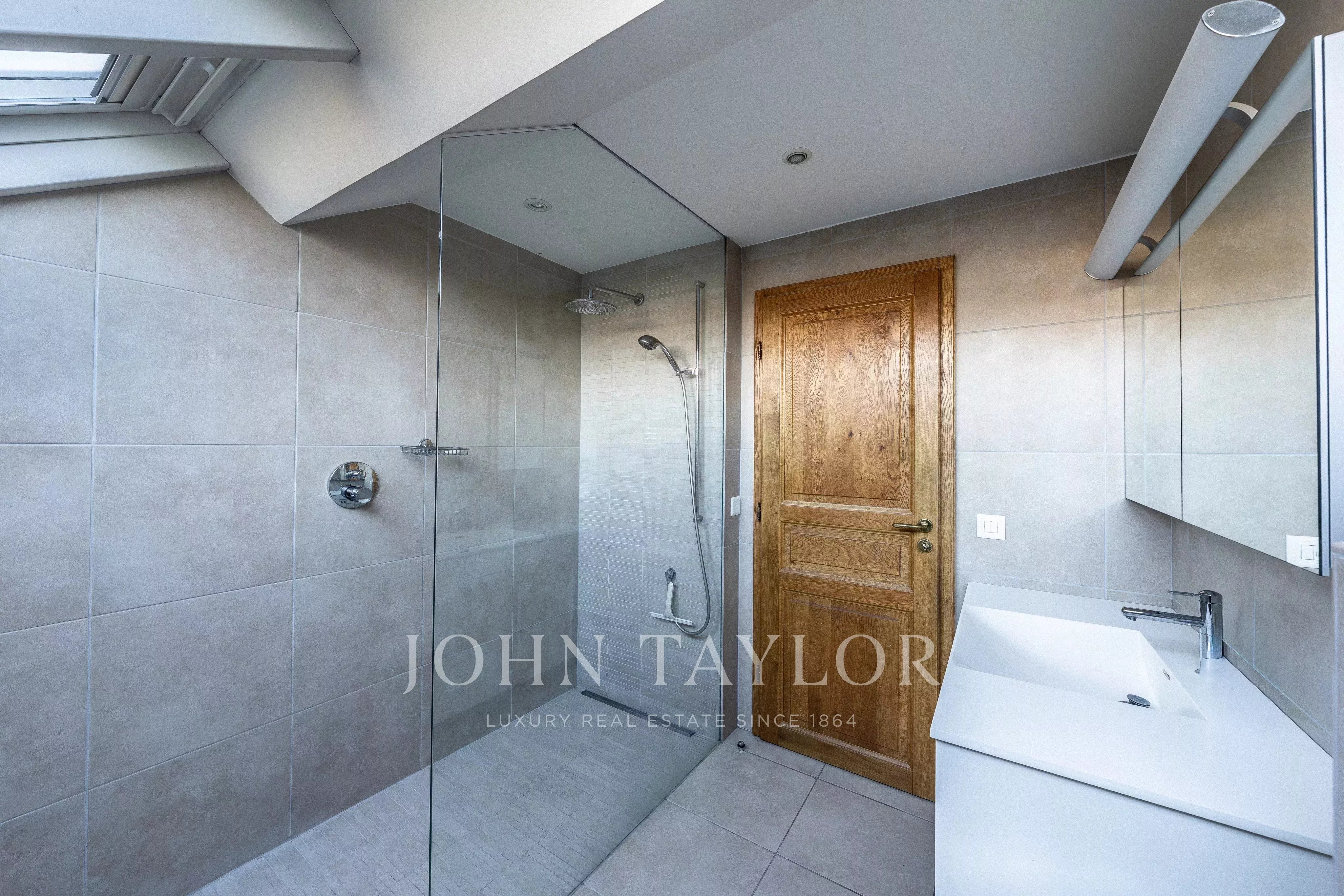 - Le deuxième niveau accueille l’espace nuit principal. Il se compose de trois chambres, dont une chambre parentale avec dressing et accès à une terrasse, une grande chambre également dotée d’un accès à une terrasse, ainsi qu’une troisième chambre. Une salle de douche moderne avec douche à l’italienne complète cet étage.
