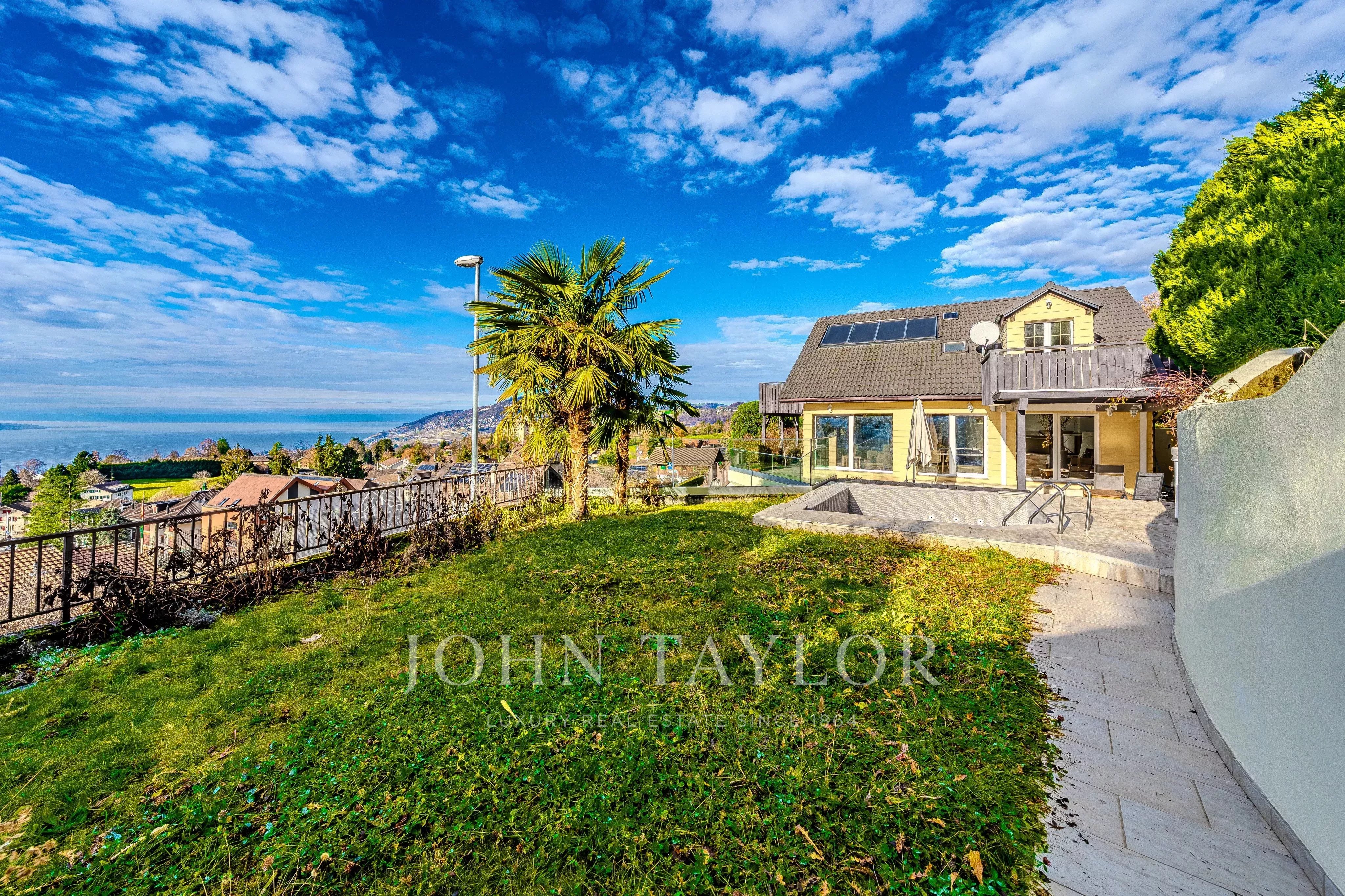 Dans un quartier résidentiel prisé de Blonay–Saint-Légier, cette villa de 6.5 pièces séduit par son environnement paisible, son excellente exposition et sa vue ouverte sur le lac Léman et les Alpes. Elle offre un cadre de vie idéal pour une famille à la recherche de confort, d’intimité et de qualité de vie.