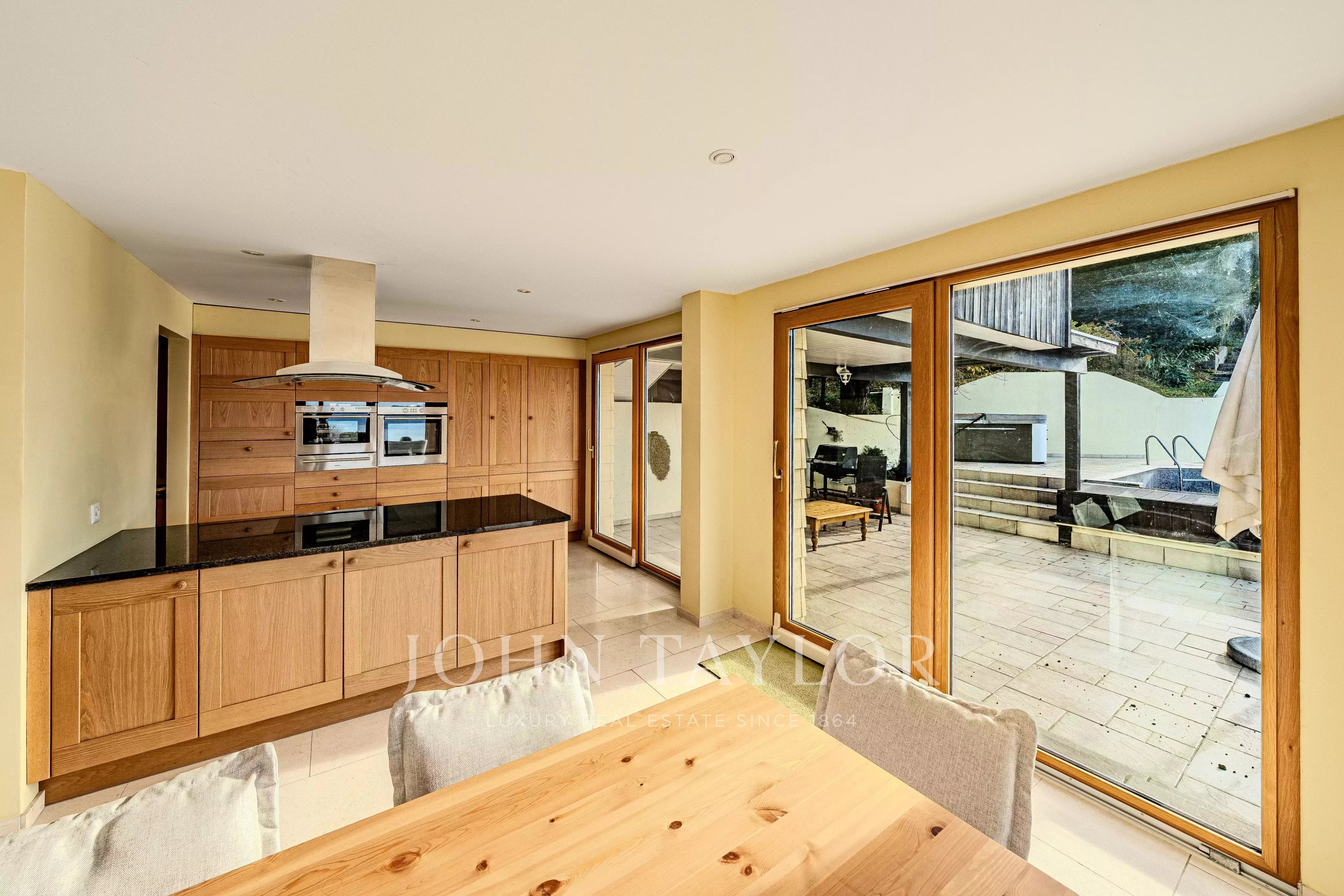 Les espaces extérieurs constituent l’un des atouts majeurs de cette maison. Une piscine extérieure chauffée, un jacuzzi et plusieurs terrasses invitent à la détente tout au long de l’année. Le jardin, aménagé avec goût, est complété par un pavillon indépendant ainsi qu’un espace couvert faisant office de jardin d’hiver, idéal pour les amateurs de plantes ou de moments de repos à l’abri.