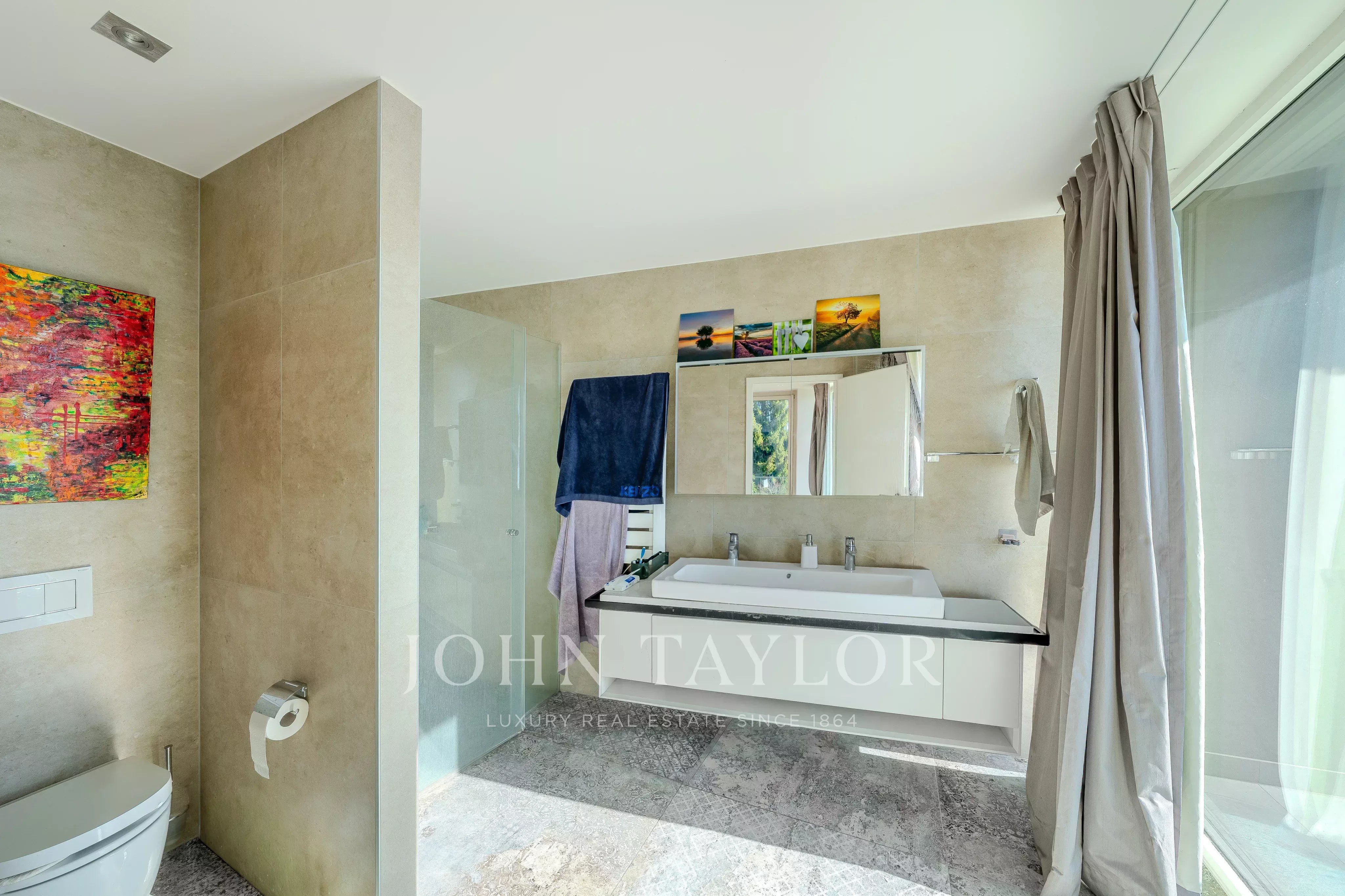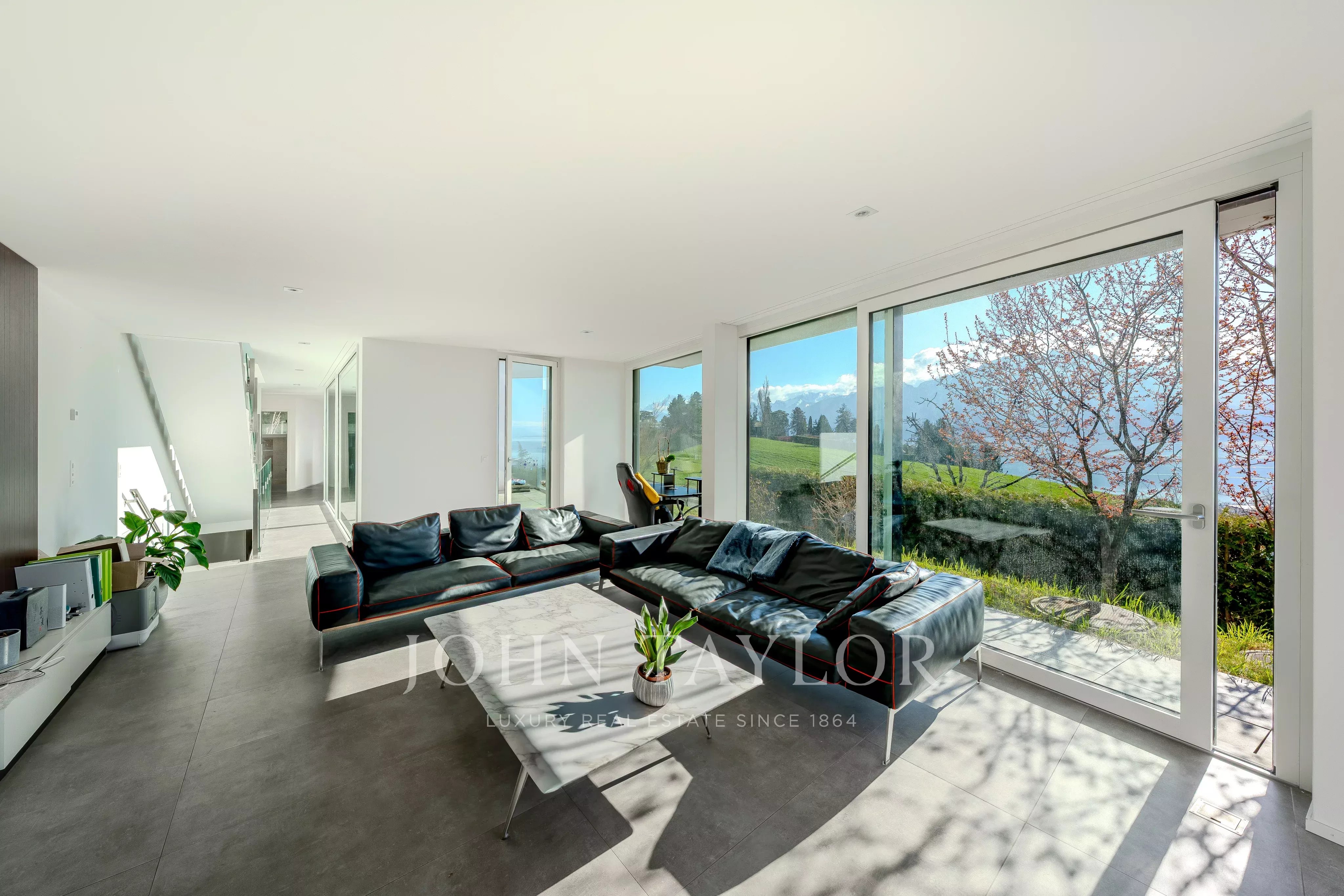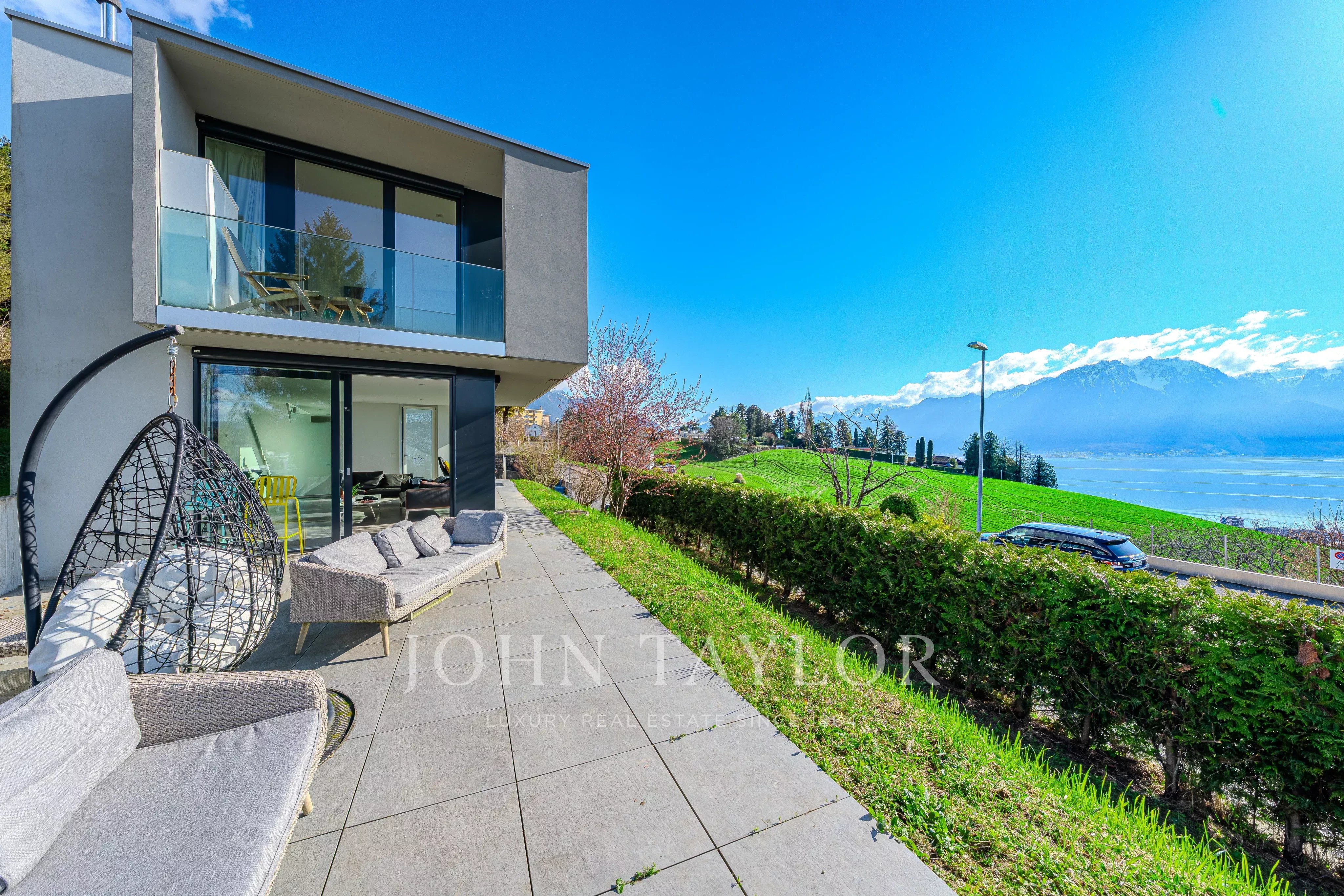 Située dans un environnement privilégié sur les hauteurs de Montreux, cette villa contemporaine construite en 2018 bénéficie d’une vue panoramique sur le lac Léman et les montagnes environnantes. Des travaux récents réalisés début 2026 ont permis d’optimiser certains espaces, offrant aujourd’hui une maison fonctionnelle et parfaitement adaptée à la vie familiale.