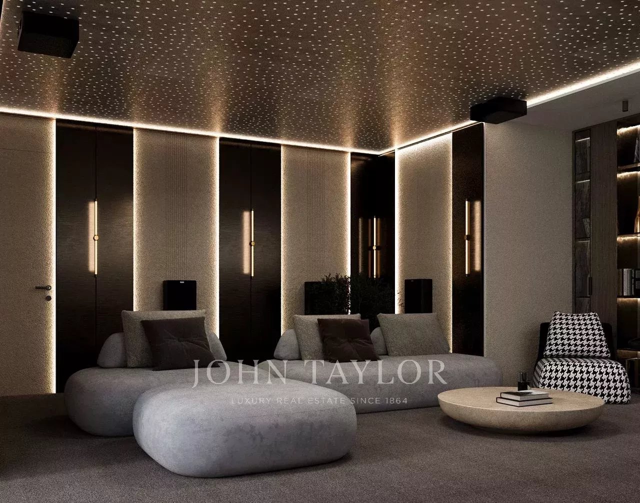 -Vous profiterez également d'une salle cinéma ainsi que d'une somptueuse cave à vins afin d'y exposer vos plus belles bouteilles.