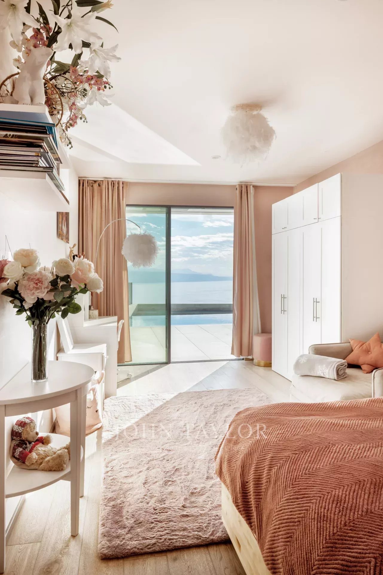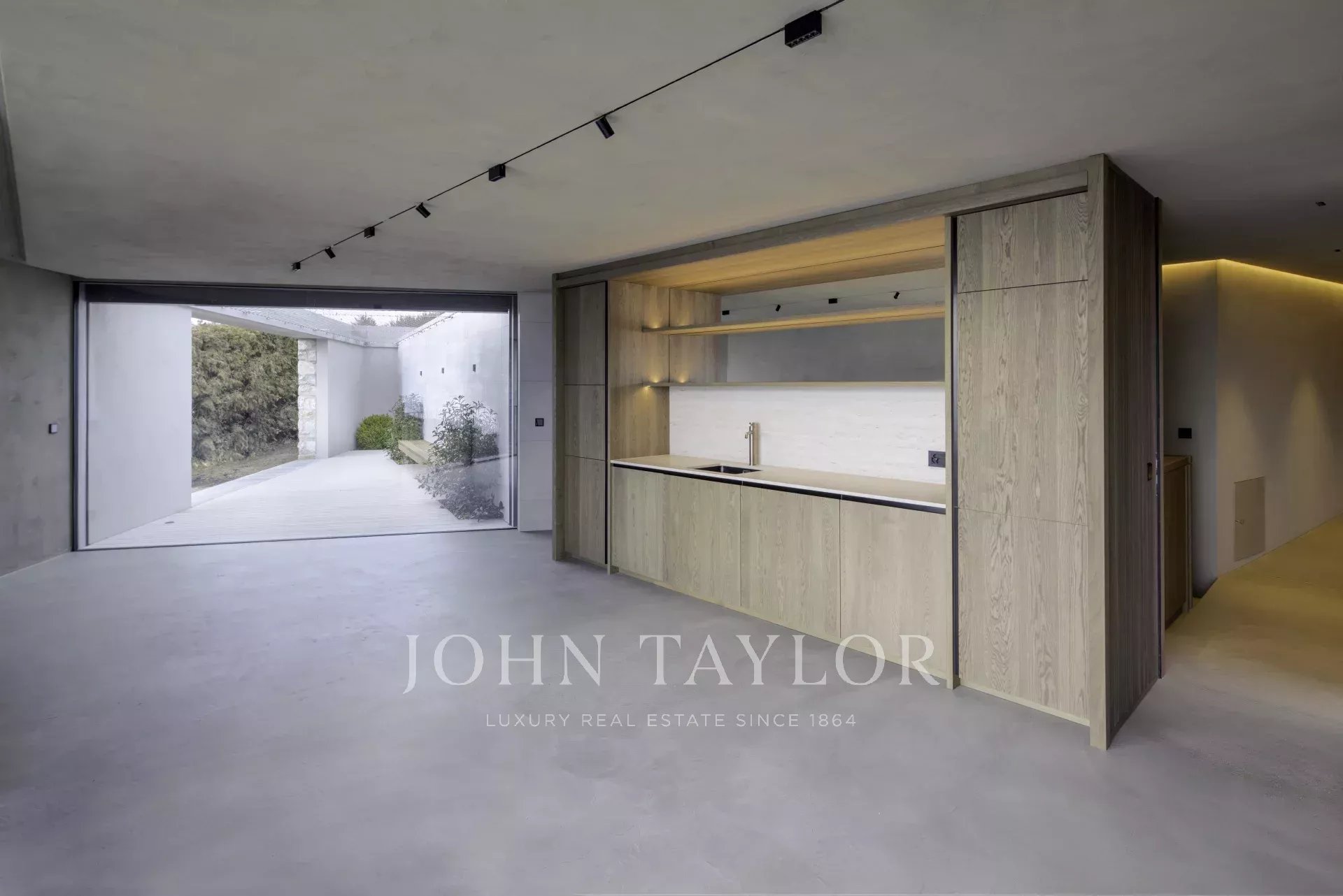 Aménagés sur quatre niveaux, les espaces de vie offrent une surface de 430 m2 : grand salon de réception avec bibliothèque et cheminée, salle à manger avec vue sud-ouest pour profiter des couchers de soleil, cuisine ouverte et intégralement équipée, six chambres à coucher dont quatre suites avec salles de douche et accès à la piscine, bureau, salle de réunion, patio, fitness, hammam, cave à vins et buanderie, entre autres.