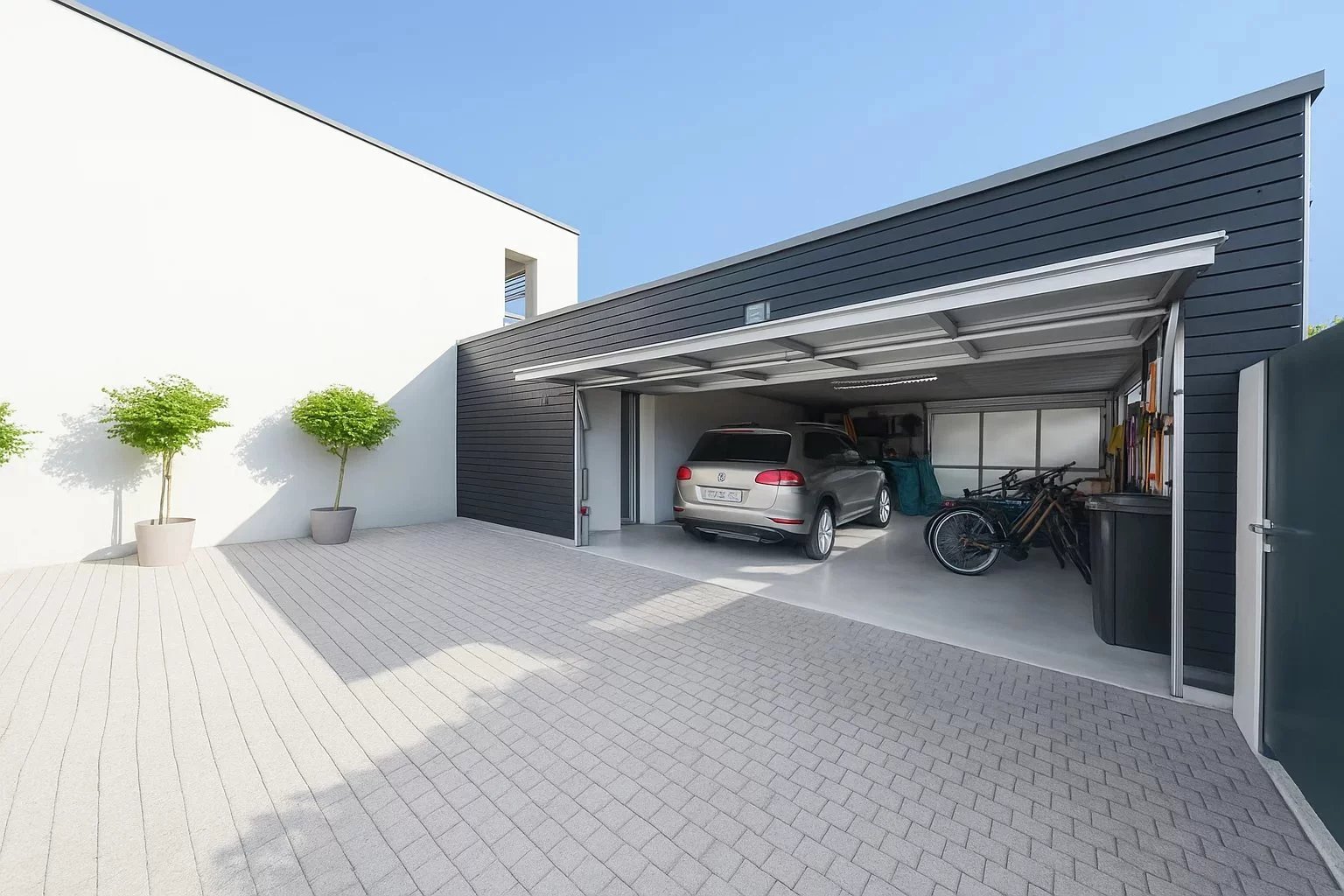 • Grand garage box pour deux véhicules, donnant sur une cour privative