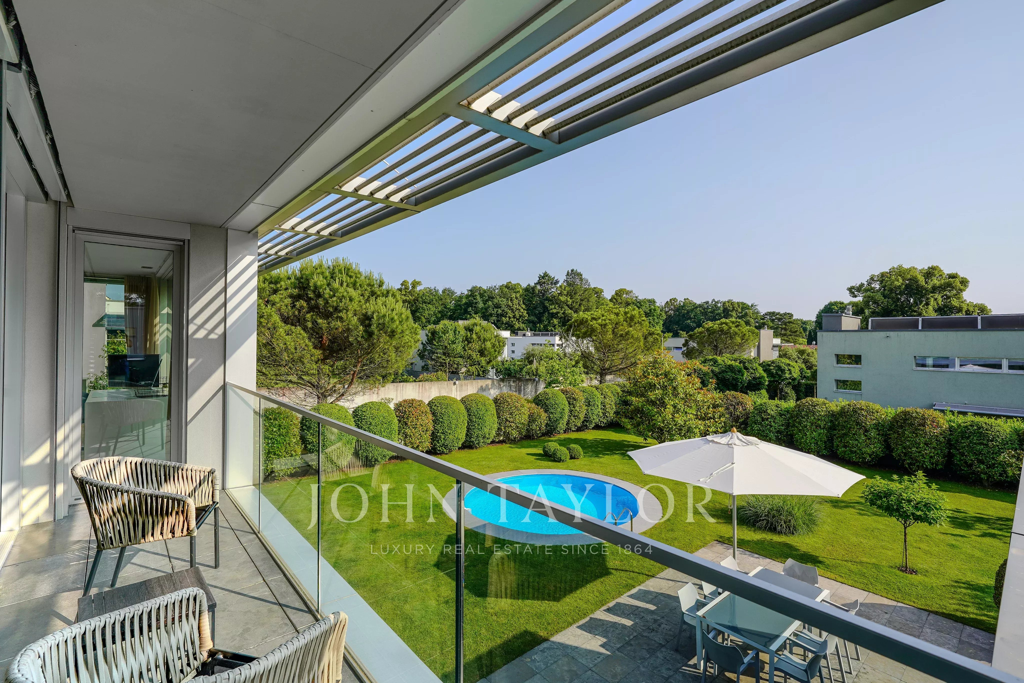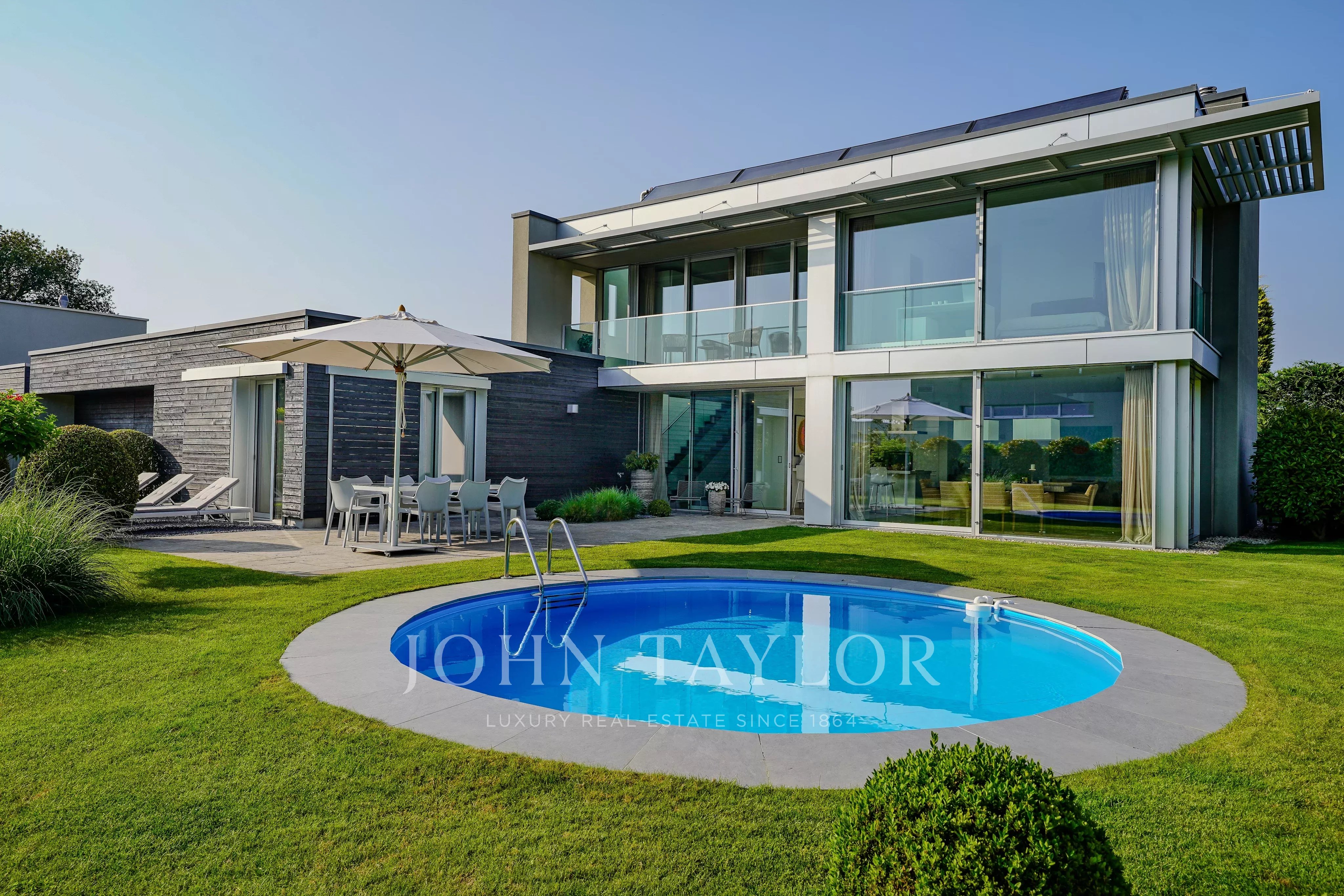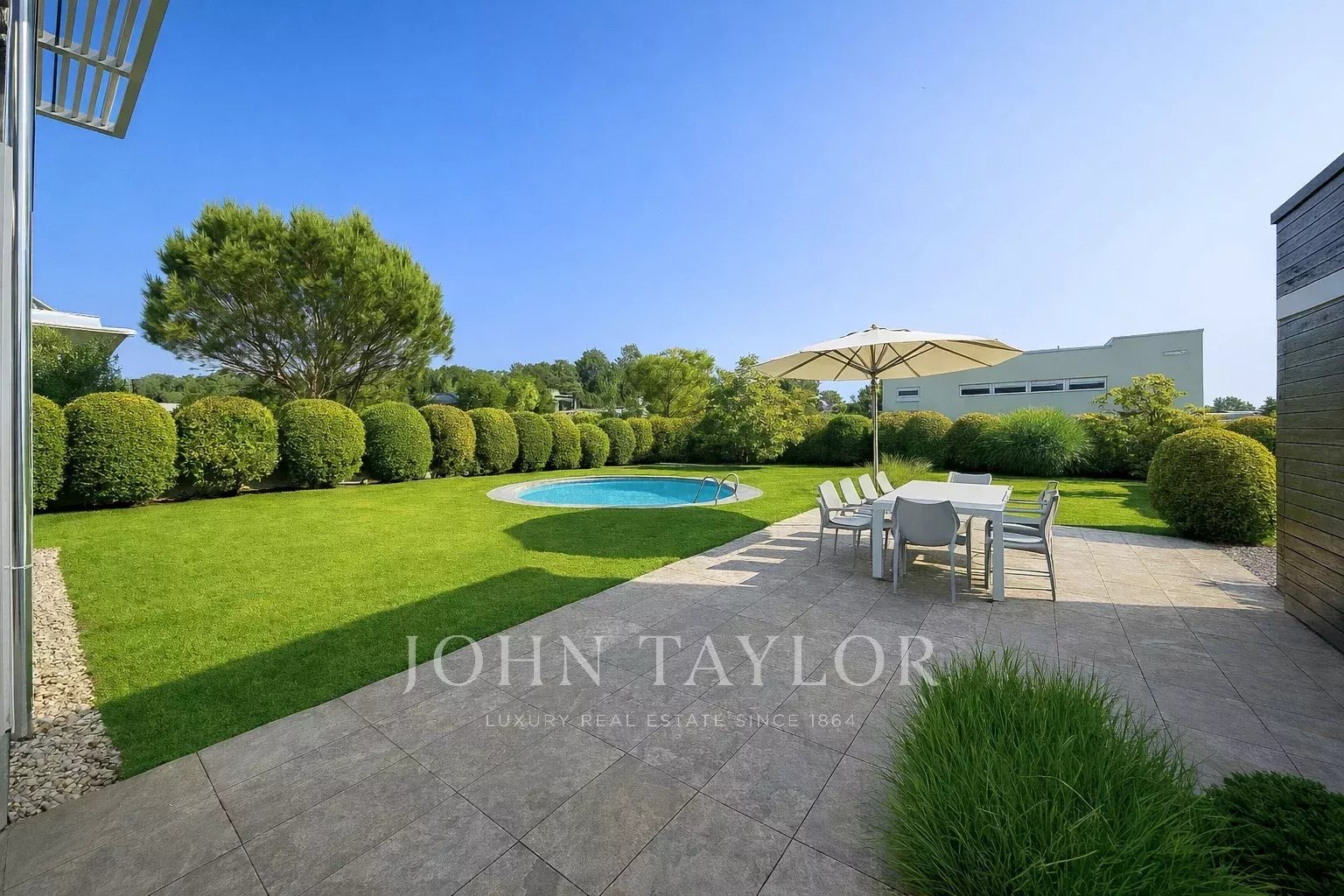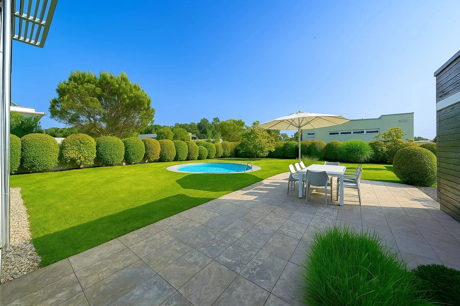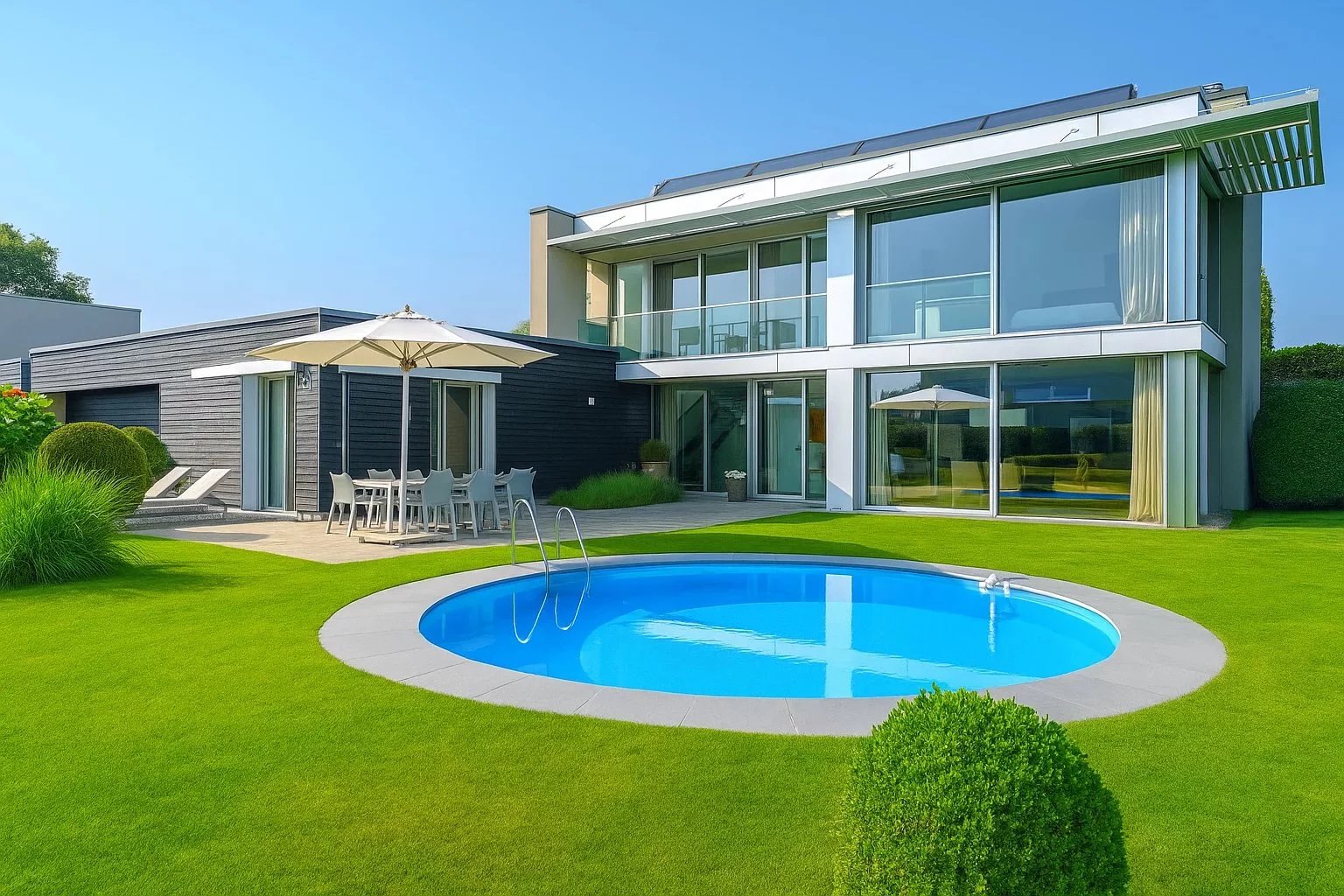 • Élégante piscine arrondie, idéale pour se détendre en toute intimité
