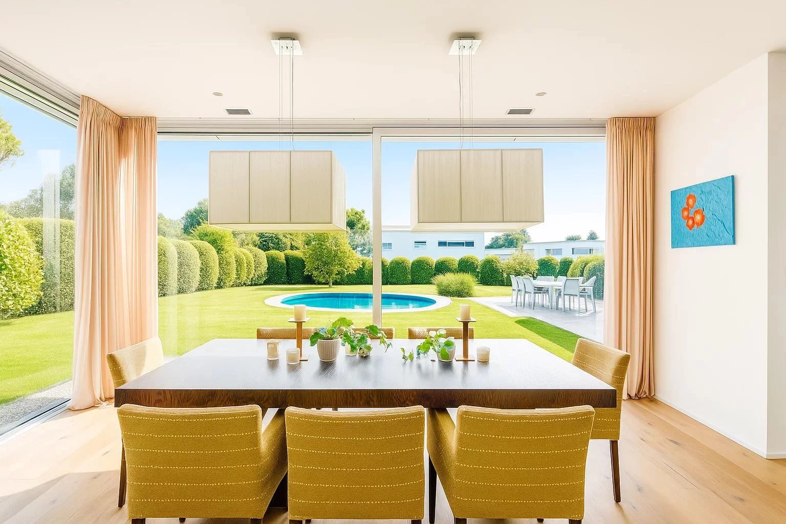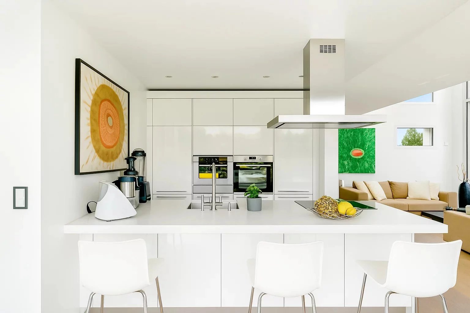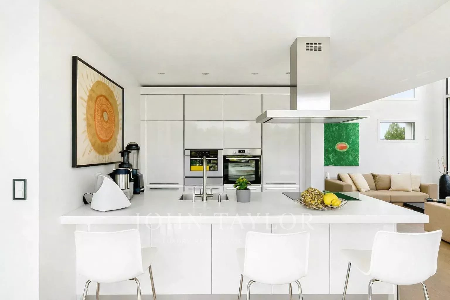 • Vaste espace de vie avec cuisine ouverte haut de gamme, grande hauteur sous plafond et accès direct à un magnifique jardin paysager