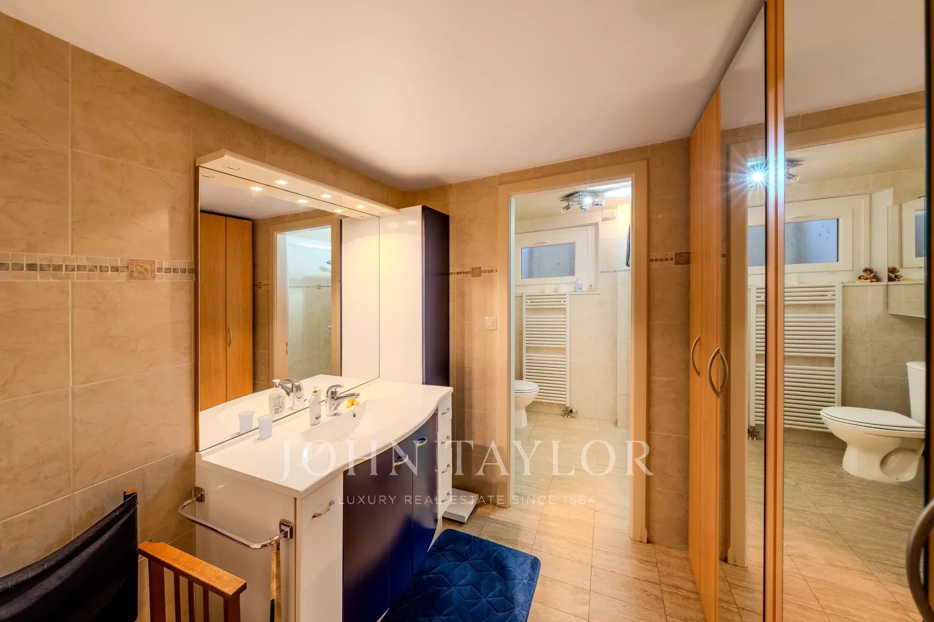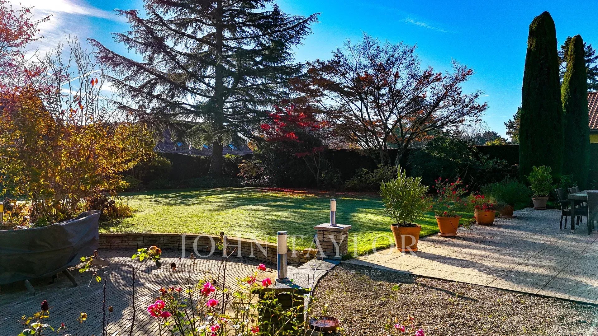 Implantée sur une parcelle d’environ 2'000 m², la propriété bénéficie d’un vaste parc arboré offrant une atmosphère paisible et intime. Le terrain est piscinable.