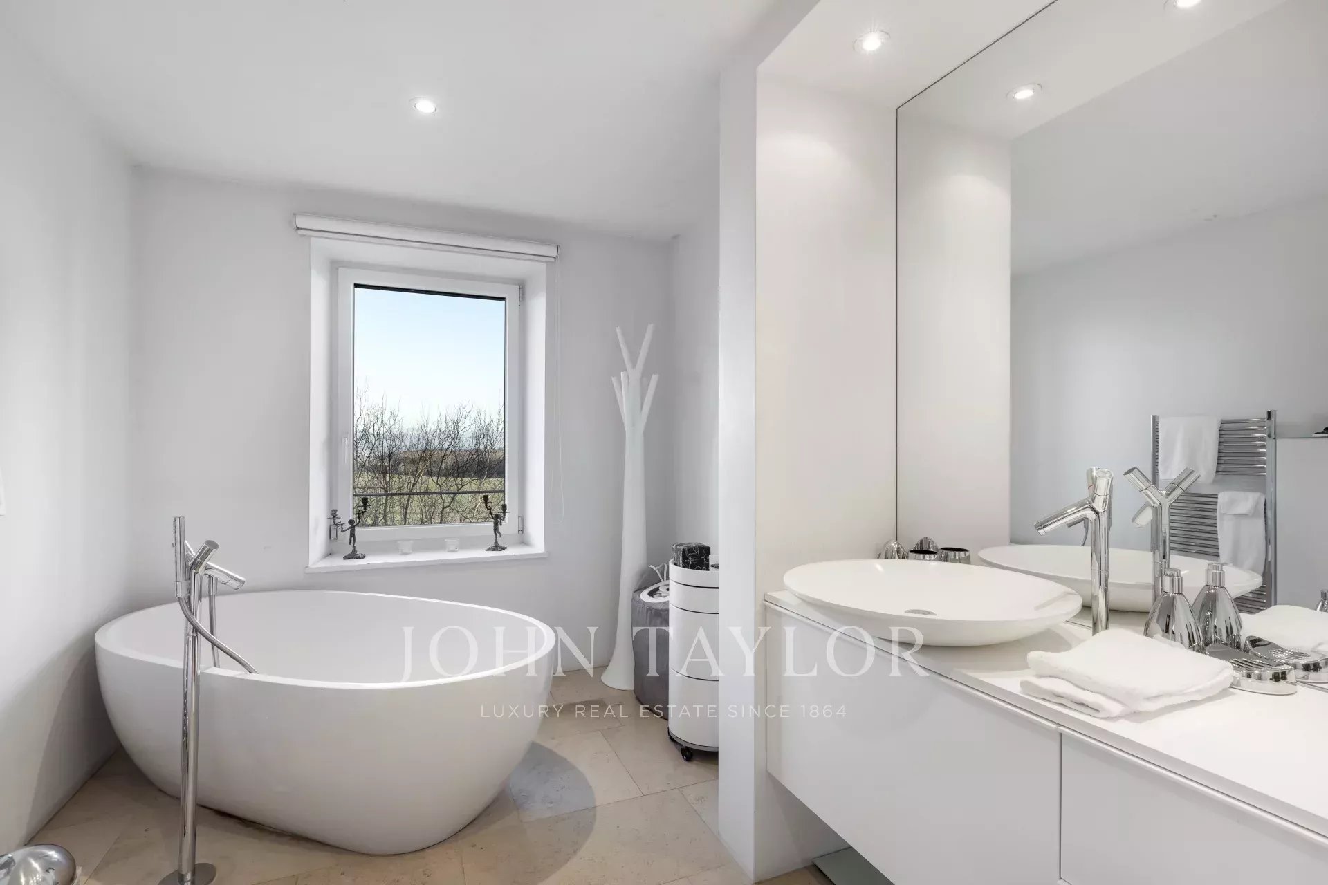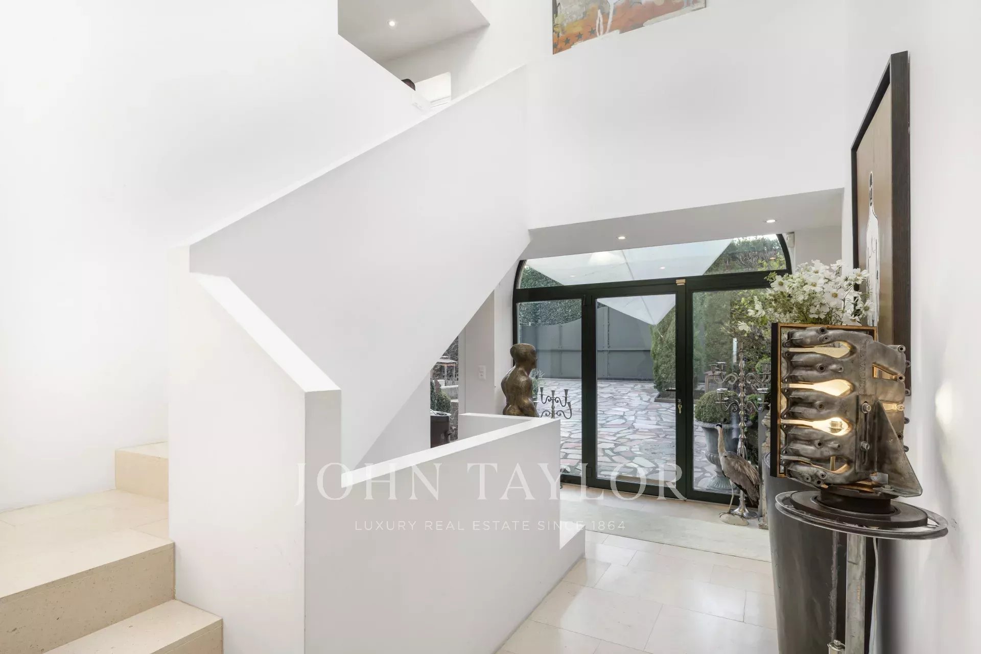 Construite en 1835, cette propriété historique a bénéficié d'une rénovation complète, fusionnant harmonieusement le charme d'antan avec une finition moderne et des matériaux haut de gamme, pour un résultat à la fois esthétique et fonctionnel. La maison allie confort et ambiance accueillante, se distinguant par ses espaces généreux et un éclairage naturel abondant. Cette propriété s'étend sur trois niveaux, offrant une surface habitable totale d'environ 300 m², et présente en outre un considérable potentiel pour des aménagements supplémentaires tels qu'une salle de sport, une salle de cinéma ou encore un appartement indépendant.
