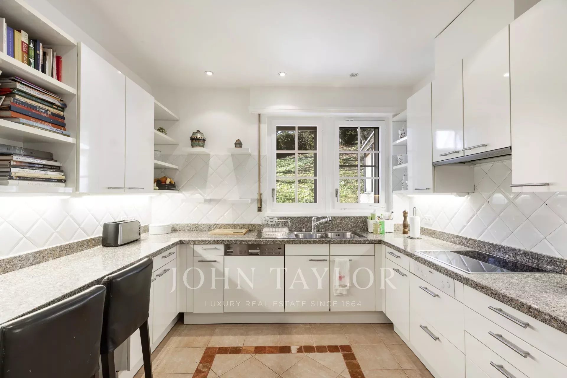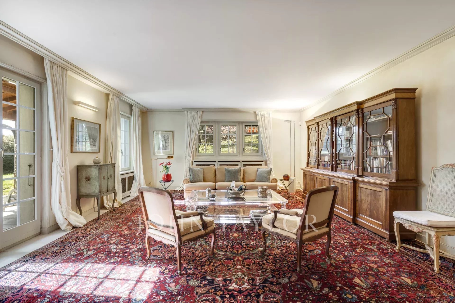 Les deux salons donnent accès à une confortable terrasse et au jardin. Une spacieuse cuisine/salle à manger s'ouvrant sur le magnifique jardin ainsi que sur une deuxième terrasse, donnent l'occasion de profiter des belles fins de soirées d'été.