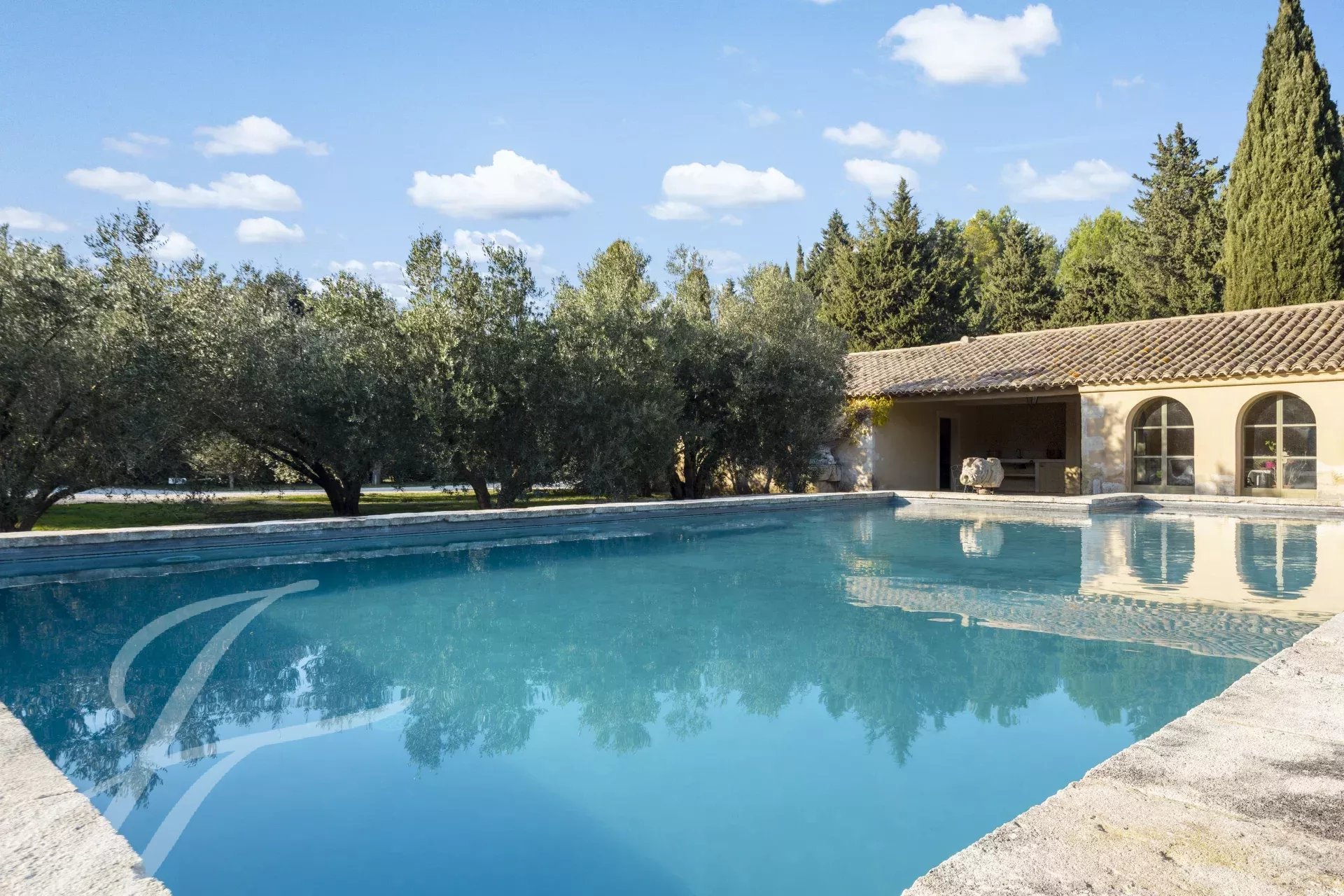 Au cœur d’un vaste domaine de près de 30 hectares, cette propriété rare profite d’un cadre naturel exceptionnel entre Saint-Rémy-de-Provence et Avignon. Pins, garrigue parfumée, 850 oliviers et 400 chênes truffiers composent un paysage typiquement provençal, tandis que de vastes prairies offrent un espace idéal pour accueillir des chevaux ou d’autres animaux.